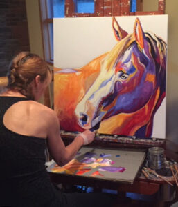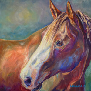 Through brush and vibrant color, I portray the inner spirit of the horse, creating a meaningful piece that speaks for the animal."